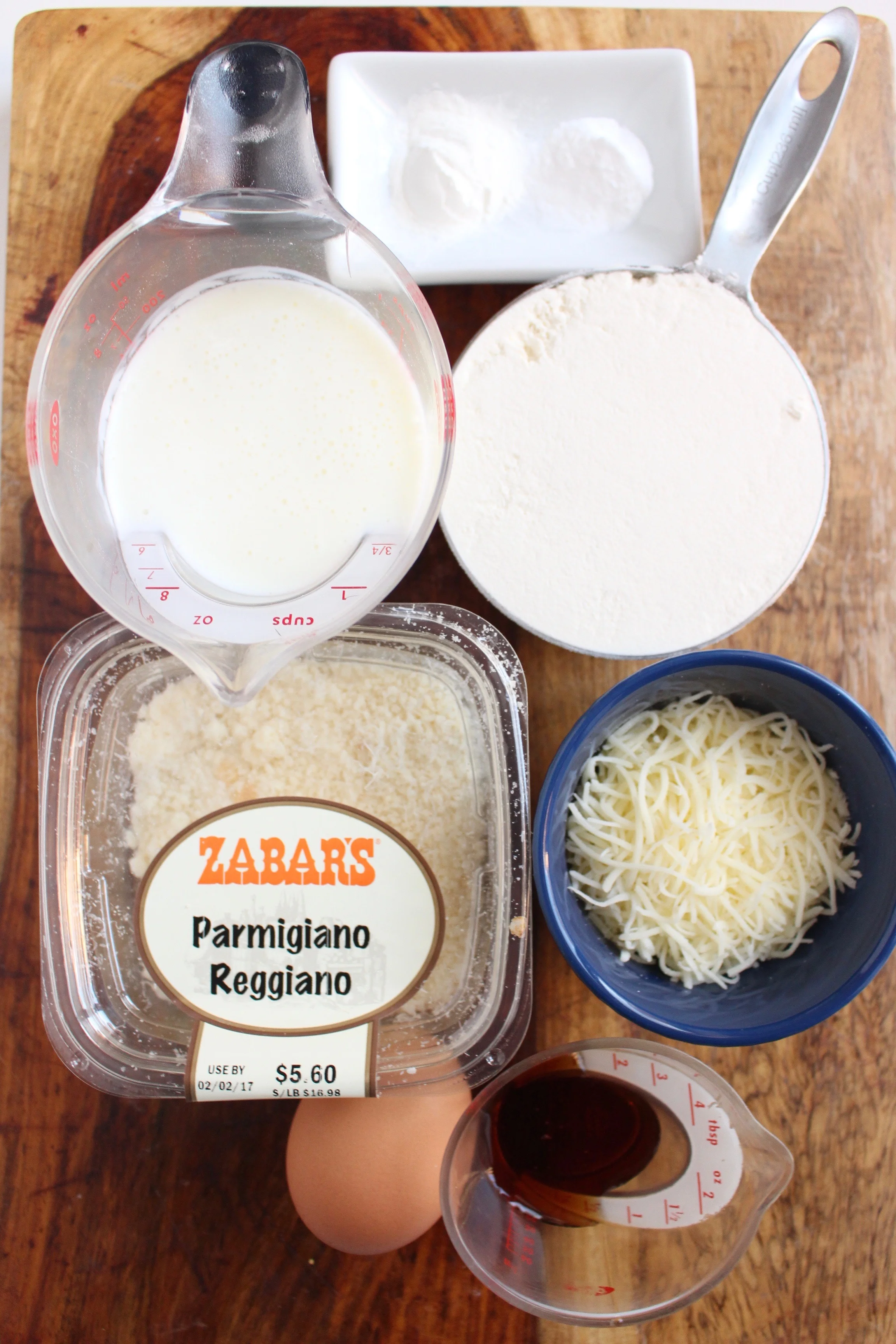 A couple of notes: I like to use parmesan and mozzarella in these waffles, but one could easily sub other cheeses. And don't be shy with the pepper. It may seem like too much to feed a toddler, but the pepper really gives the waffles a punch and doesn't taste spicy in the final product. AND the Tbsp of maple syrup (or sugar of your choice) is vital. I've omitted it before and the waffles don't taste the same.