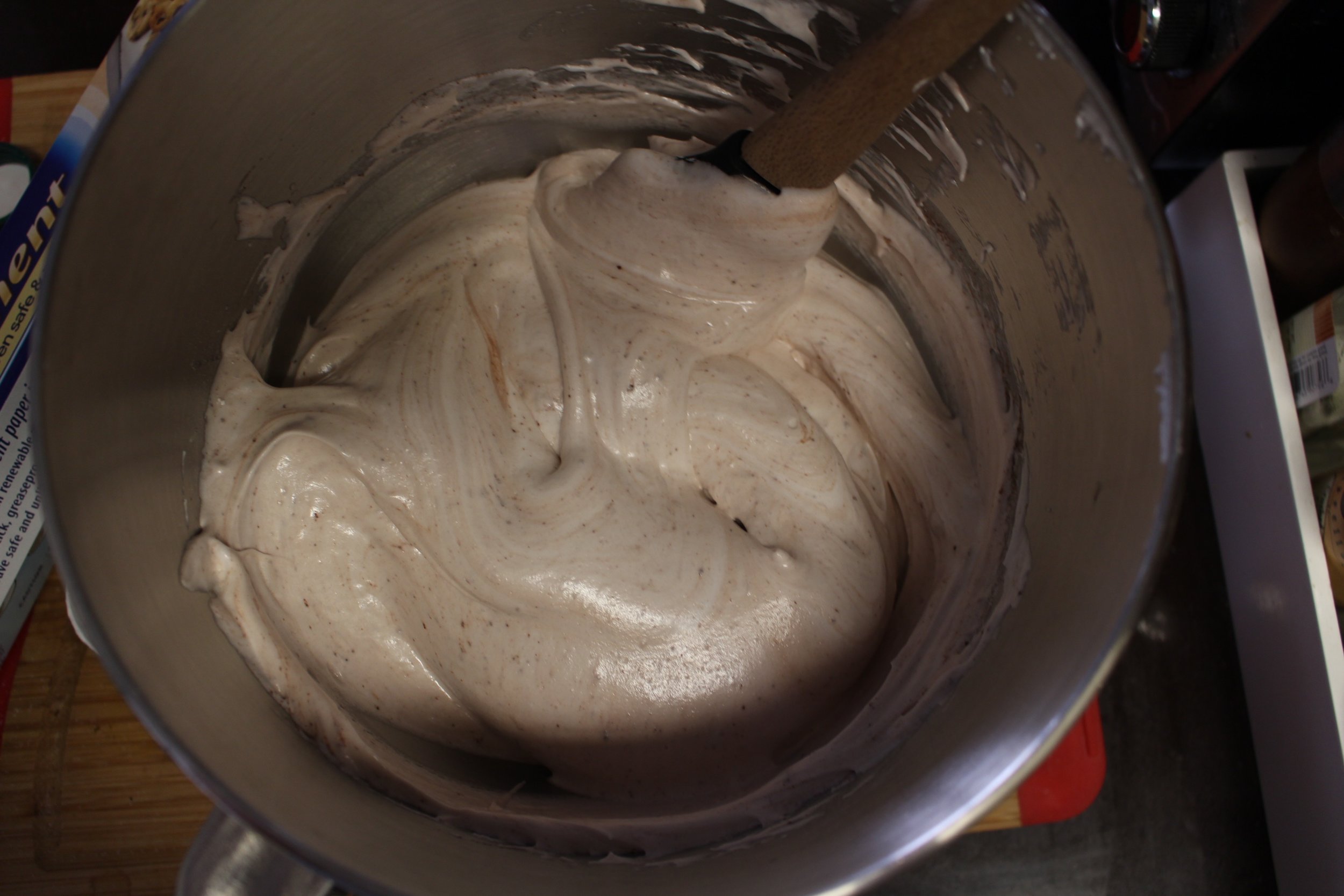 Mound this mixture onto your parchment and smooth down the top a bit, leaving a slight divot in the center. Put in the oven and immediately reduce heat to 300. Cook for 60-70 minutes and then turn off the heat and let cool completely in the oven with the door closed.