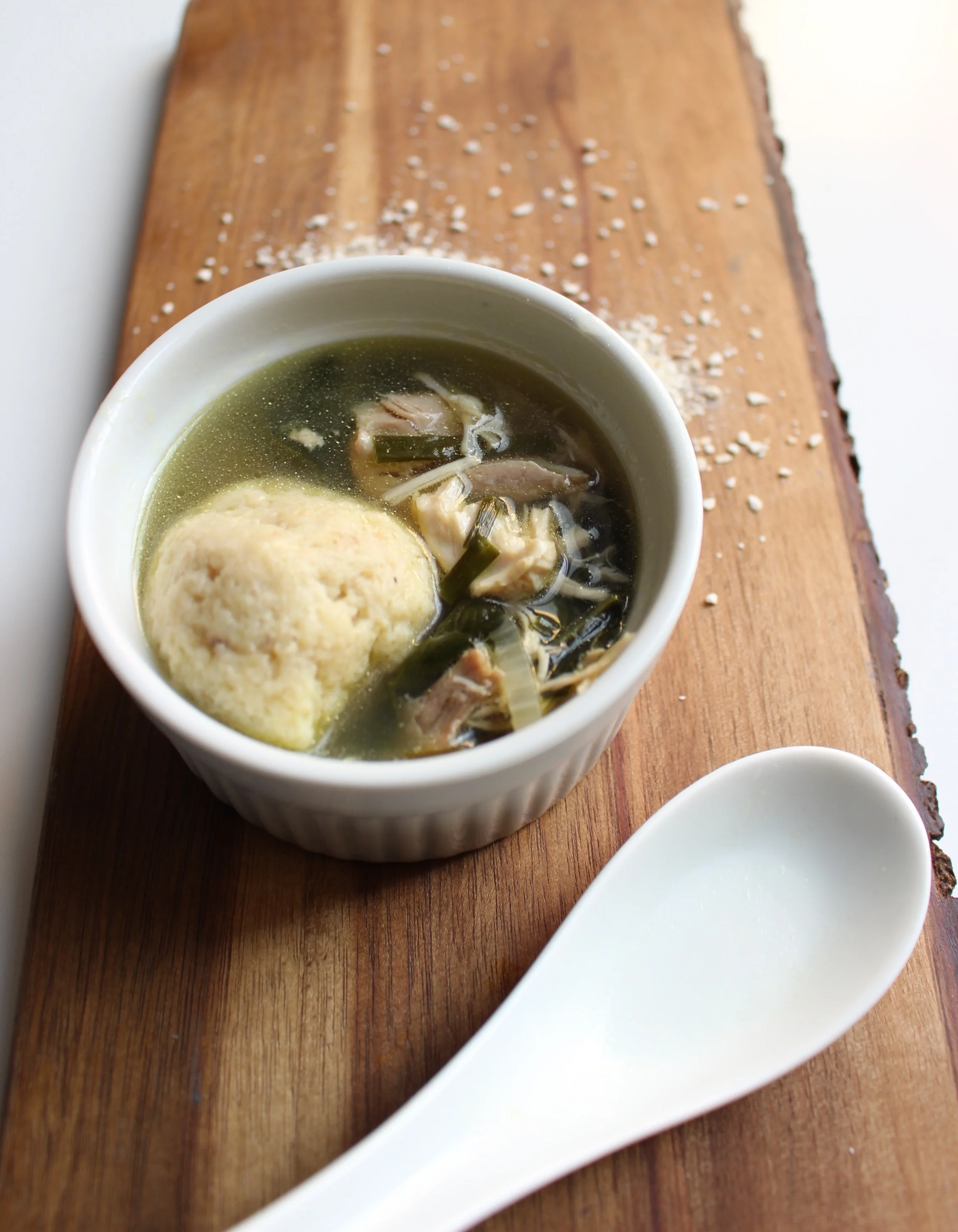 Green matzo ball chicken soup